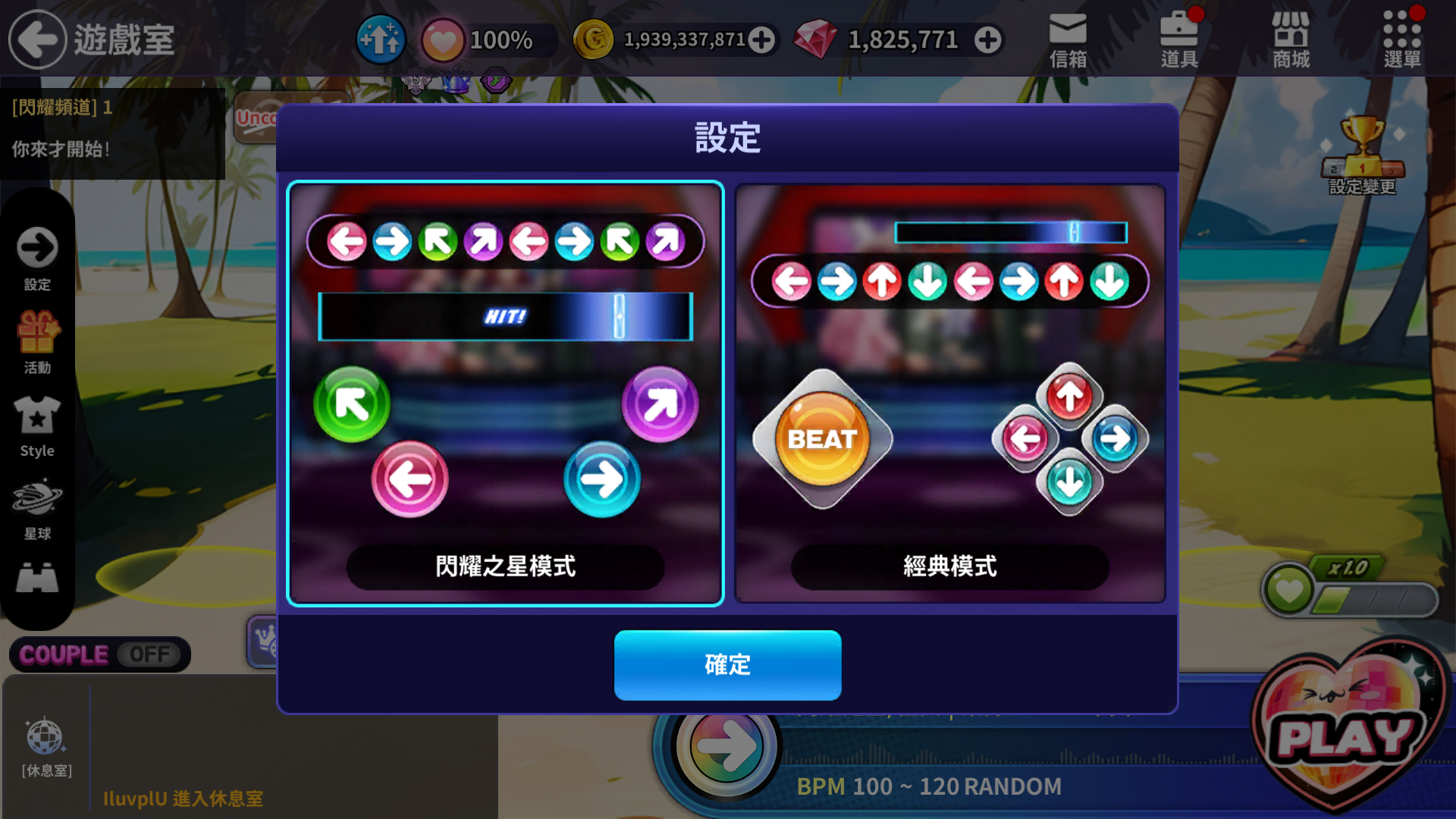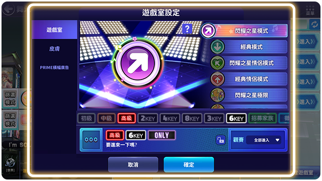 閃耀 & 經典模式設定選擇按鍵及視窗 | |