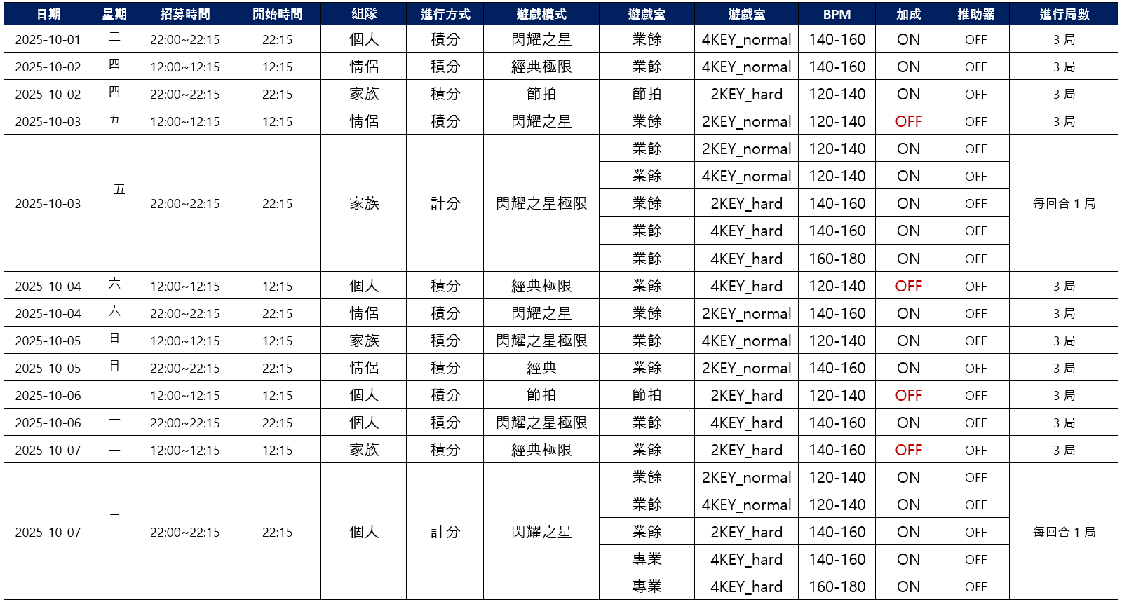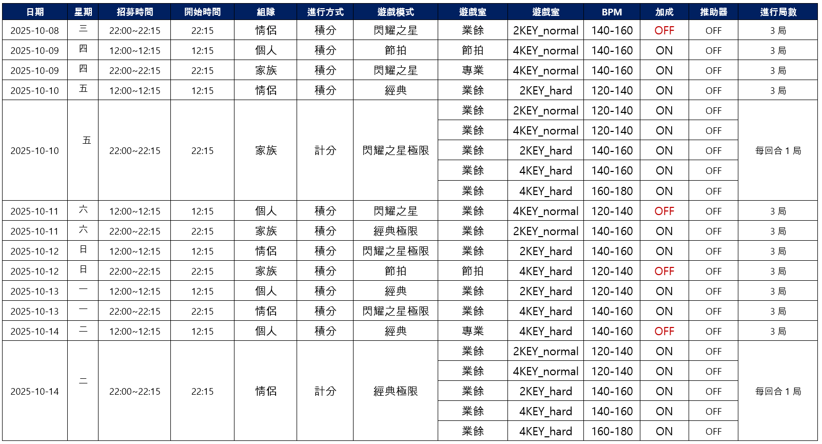 關於這次2025年10月第1,2周淘汰賽的日程。