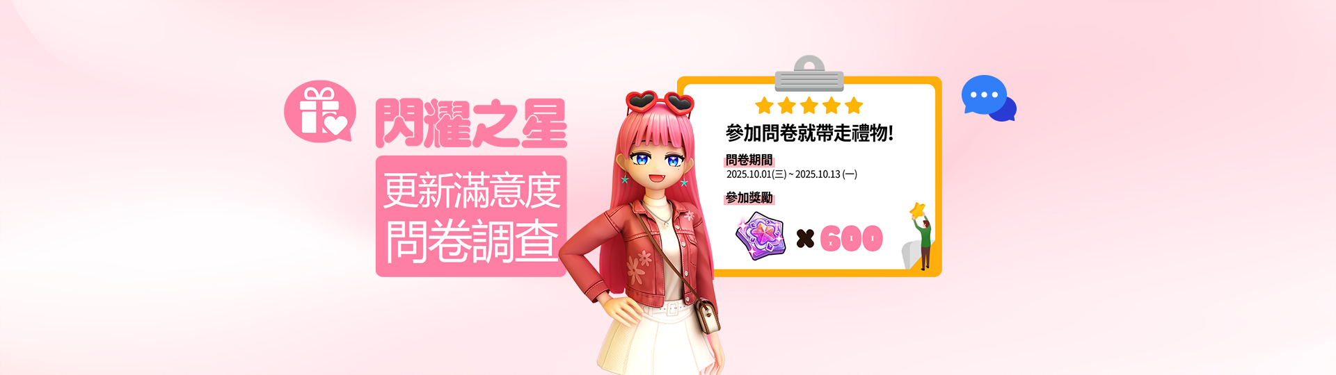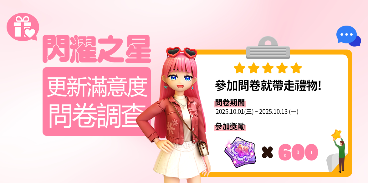 閃耀之星更新滿意度問卷調查活動 (25年9月第4周)~٩(๑❛ᴗ❛๑)۶ 閃耀之星