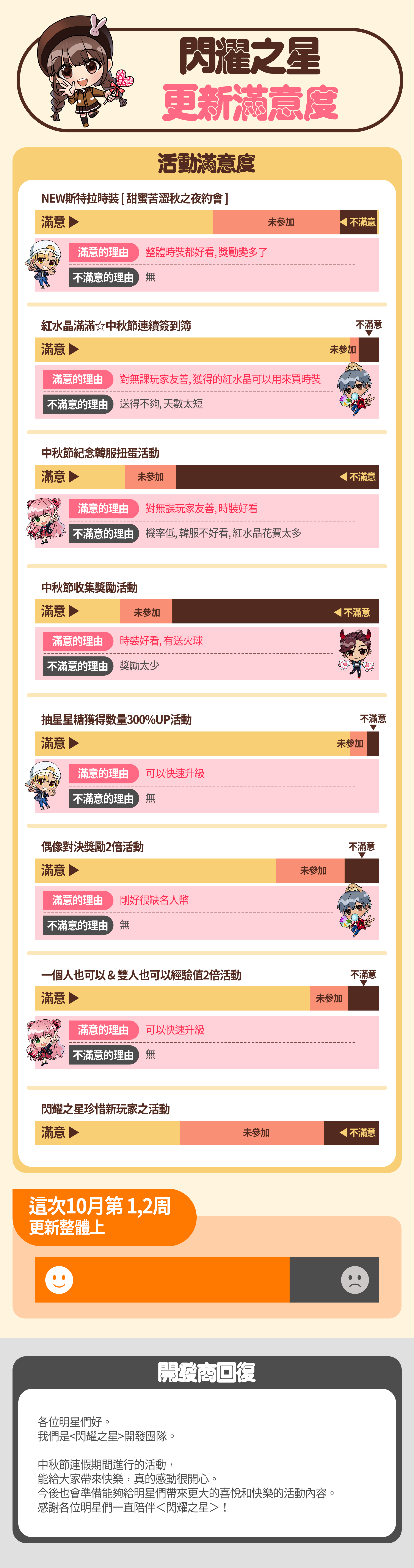 25年10月第1,2周更新滿意度調查結果及事後規劃 閃耀之星