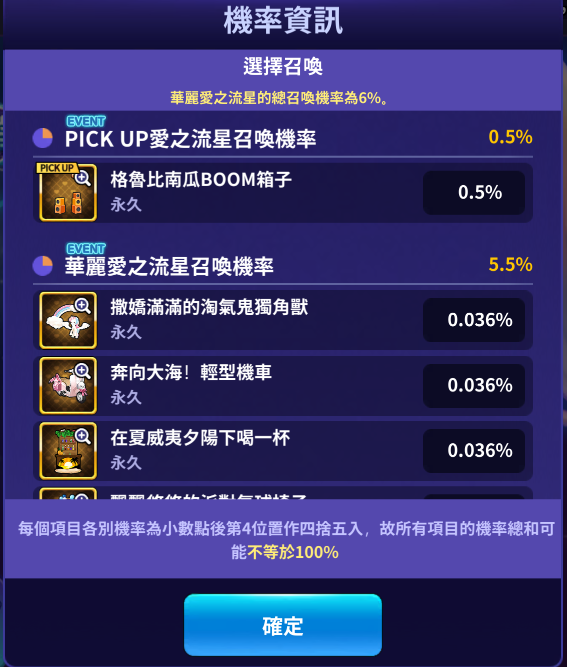 - 在愛之流星上進行抽卡時,華麗愛之流星召喚機率提升至2倍。