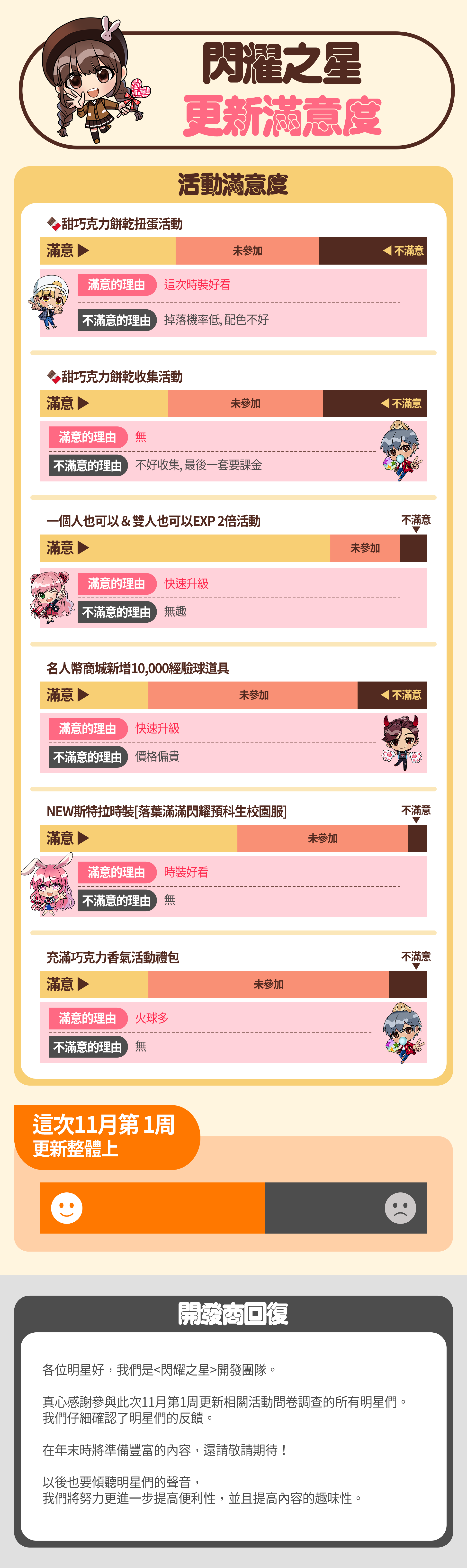 25年11月第1周更新滿意度調查結果及事後規劃 閃耀之星