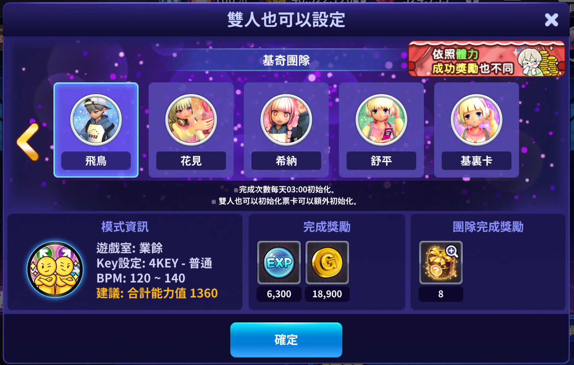 - 完成偶像對決就可以獲得團體完成獎勵2倍獎勵。