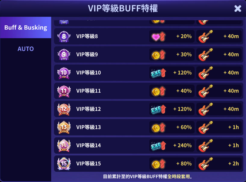 - 在活動期間時,VIP BUFF 經驗值3倍 UP。