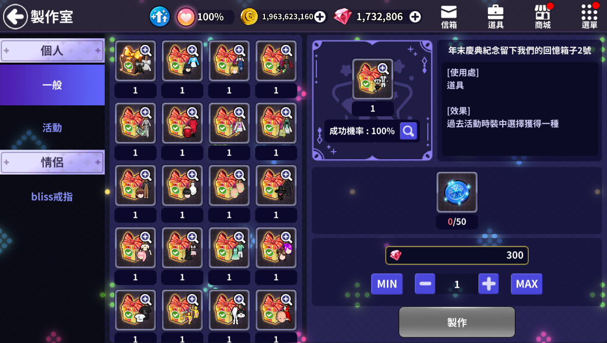 - 進行舞池模式,將可以獲得的年末閃耀雪花硬幣製作成想要的箱子或是道具等。