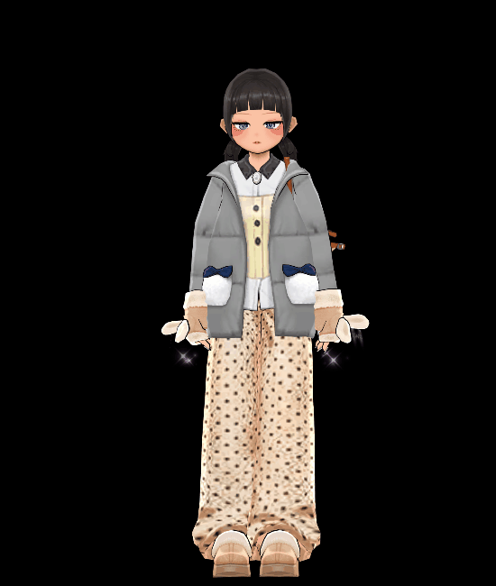 可愛卻陰險的微笑臉部 | 蝴蝶結針織衫和圍脖 | 打工時裝清掃拖鞋湛藍色 | 妨礙藝術的香檳小貓 |