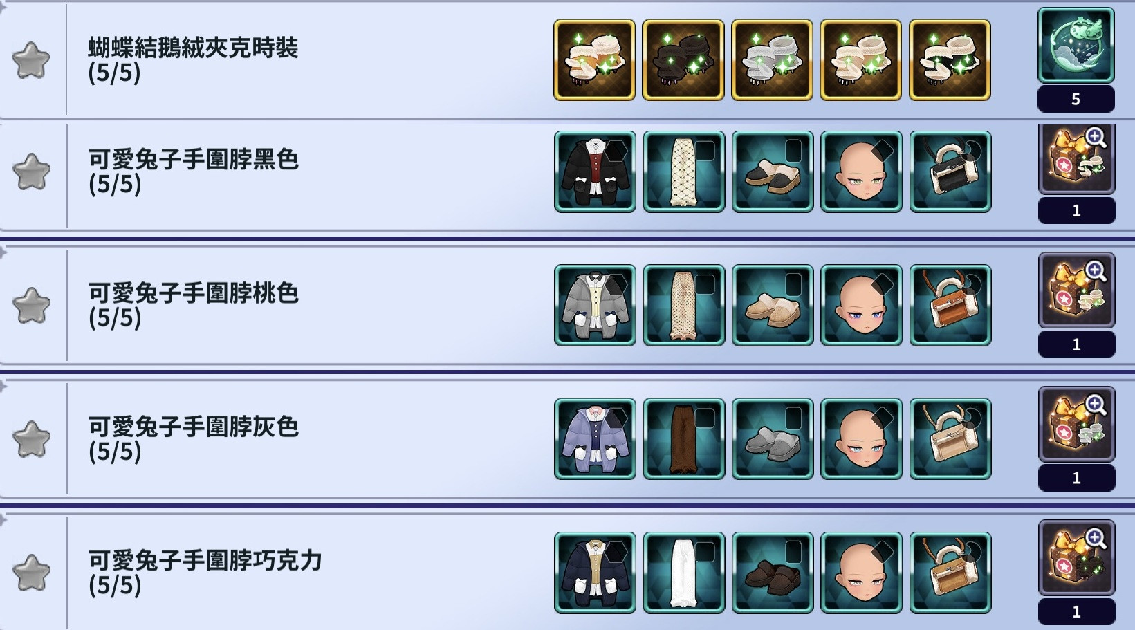 - 獲得符合每個收集獎勵的時裝,當符合條件時,就可以獲得收集獎勵。