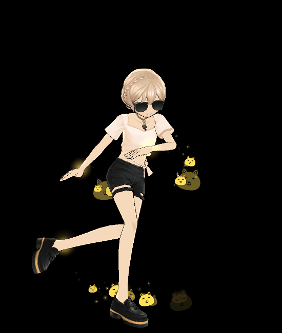 我是白貓套裝 | 呼喚你的危險臉部黑色 | 打工時裝華麗泡泡棒金色 | 啦啦隊球鞋 |