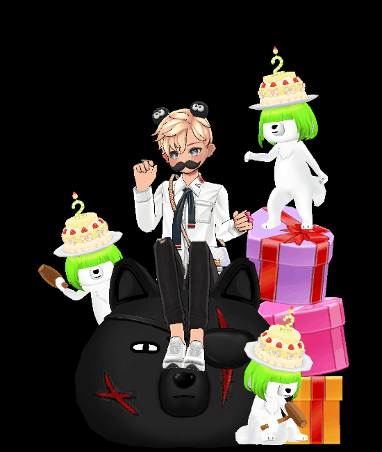 我是灰貓玩偶帽子 | 陰間使者黑笠 | 打工時裝華麗泡泡棒天空色 | 啦啦隊蝴蝶結馬尾 |