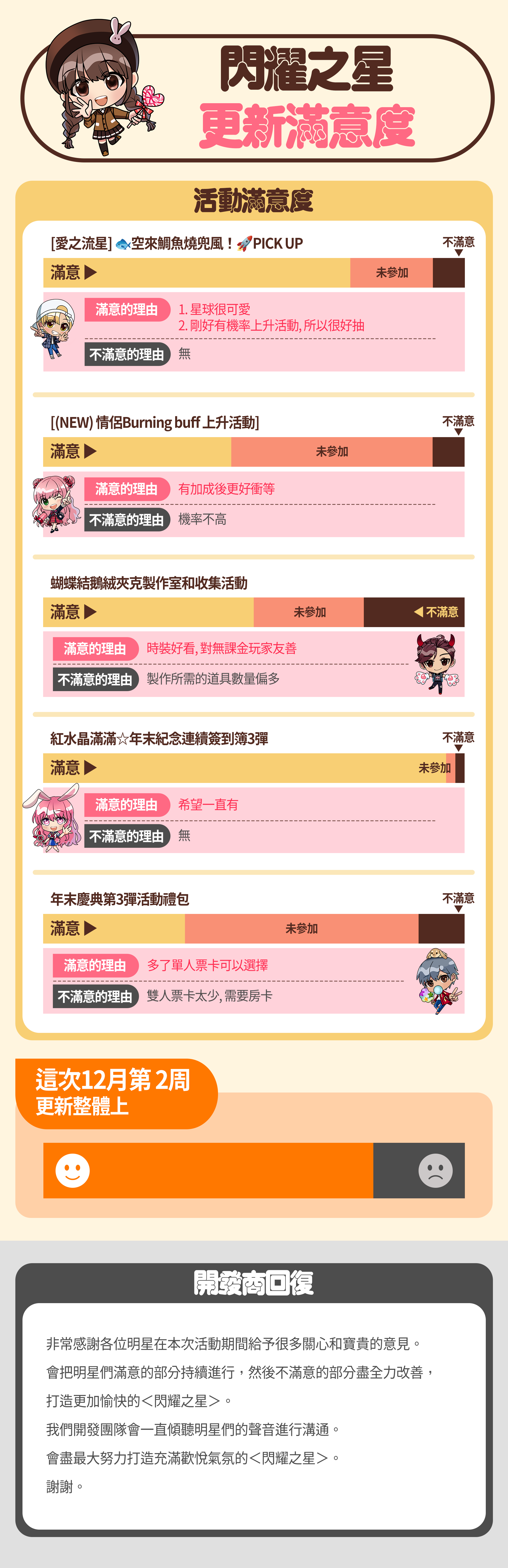 25年12月第2周更新滿意度調查結果及事後規劃 閃耀之星