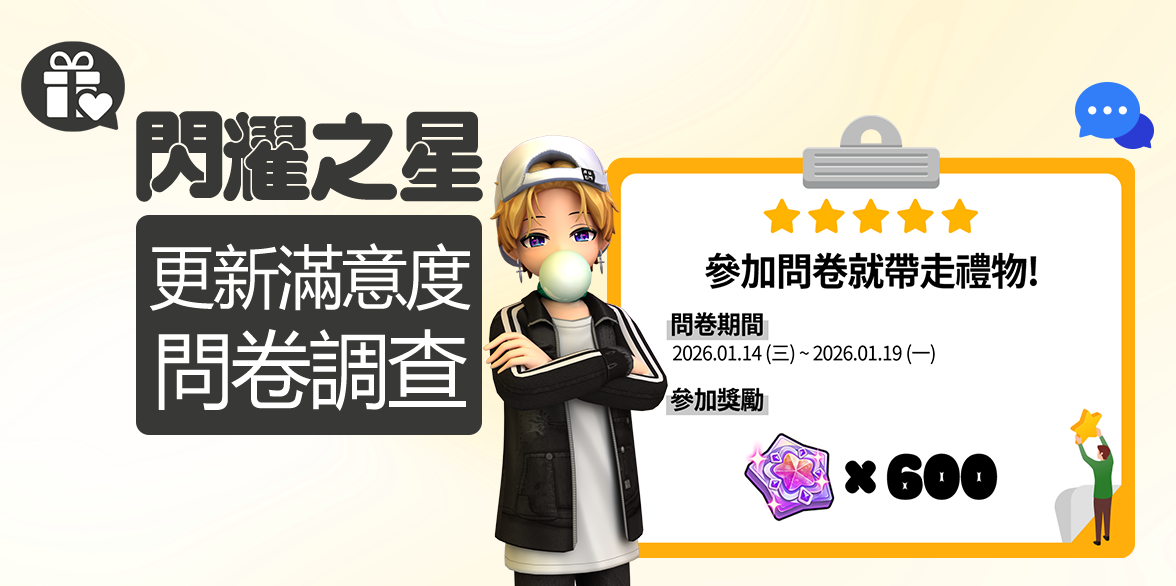 閃耀之星更新滿意度問卷調查活動 (26年1月第2周)~٩(๑❛ᴗ❛๑)۶ 閃耀之星