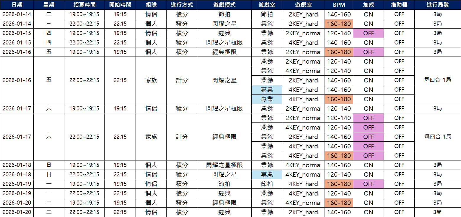 關於這次2026年1月第3周淘汰賽的日程。