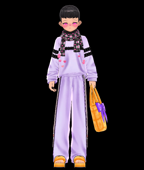 疑似打扮蕾絲帽T紫色 | 疑似打扮蕾絲帽T紫色 | 疑似打扮心形藍色格子圍巾 |
