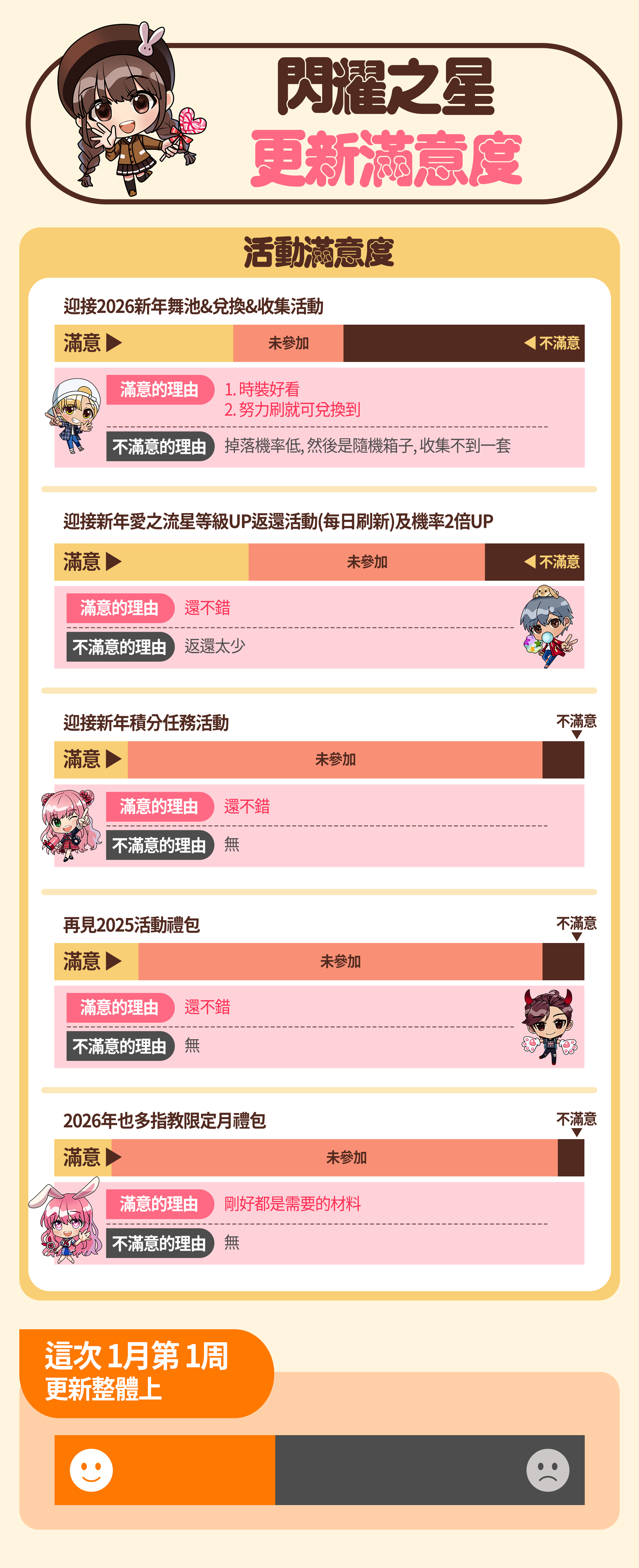 26年1月第1周更新滿意度調查結果及事後規劃 閃耀之星