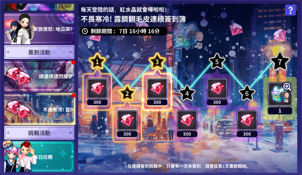 不畏寒冷! 連續簽到簿活動 閃耀之星