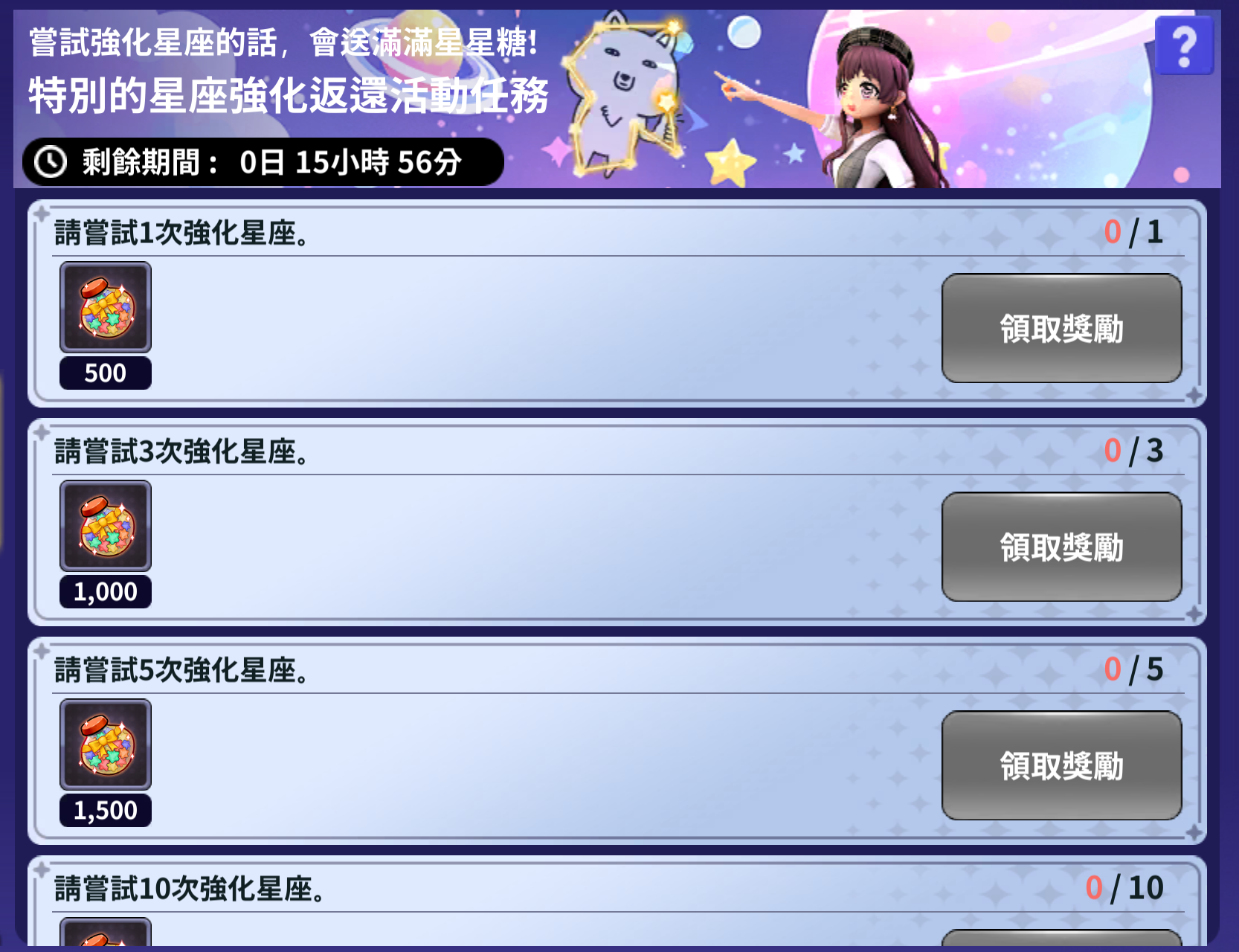 星座強化 5回 | 星星糖 1,500個 |