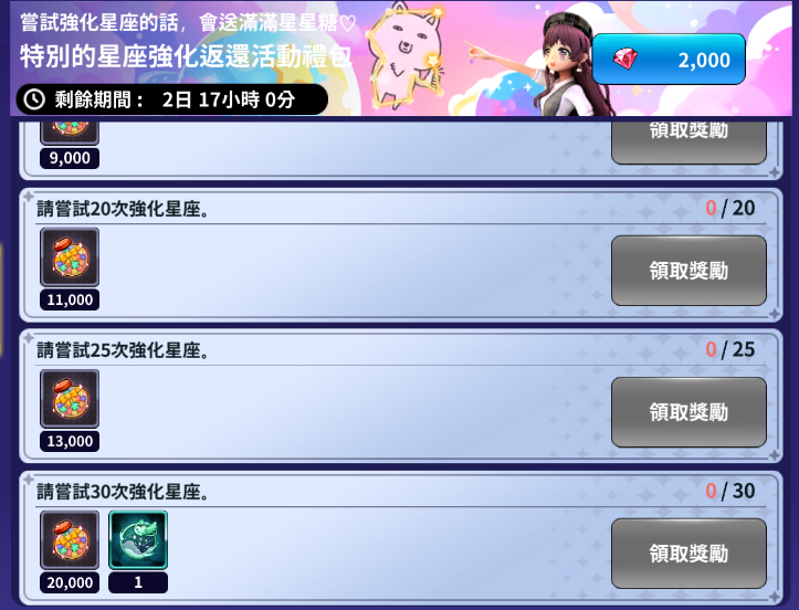 - 活動期間嘗試強化星座,達成目標任務次數時可獲得獎勵。