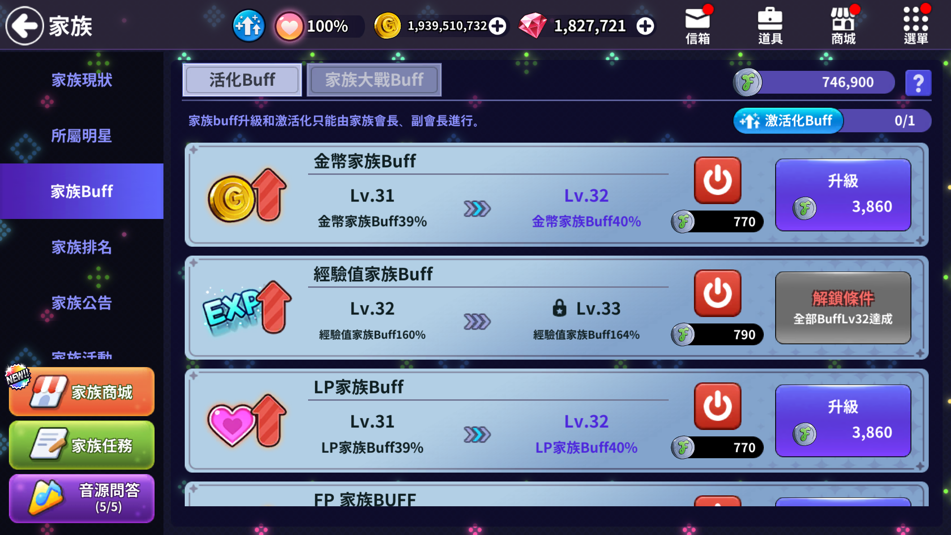 閃耀 / 經典家族偶像對決 | 調酒師偶像 | 家族榮譽硬幣 | 20 → 40 |