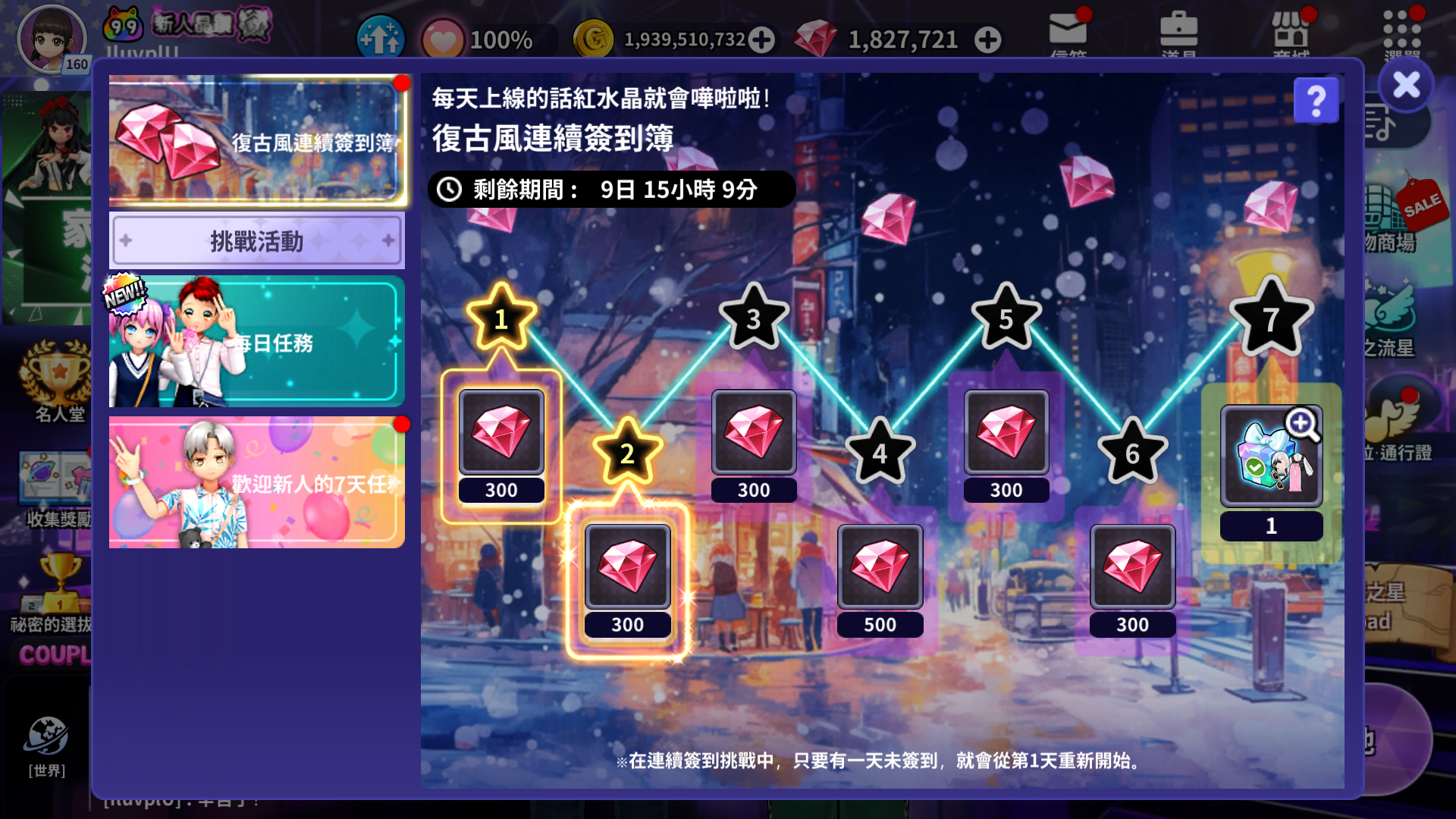 | 第7天 | 復古風格華麗時裝連續簽到簿選擇箱子 1個 |