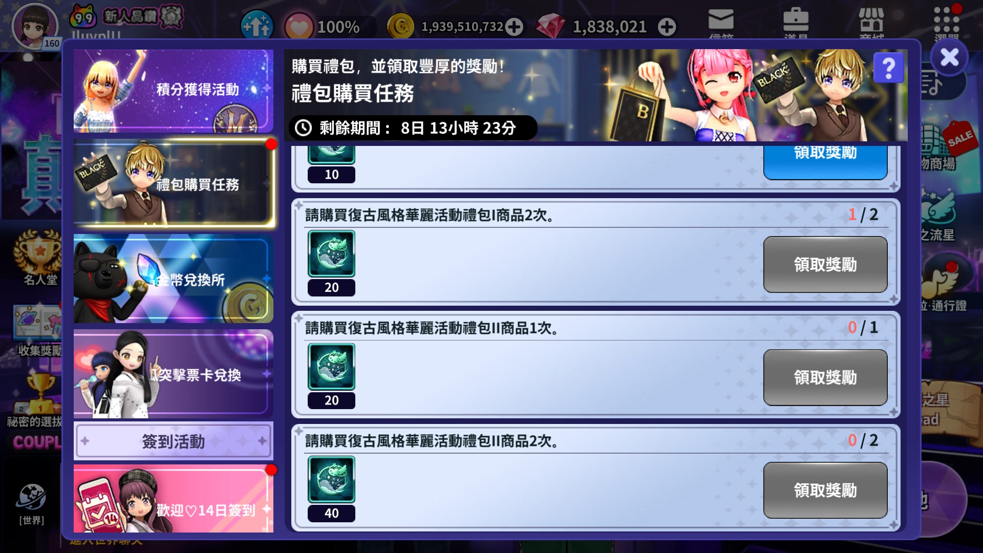- [主畫面] - [活動] - 可以在[禮包購買任務] 標籤上確認