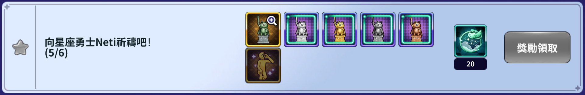 - 獲得符合每個收集獎勵的時裝,當符合條件時,就可以獲得收集獎勵。
