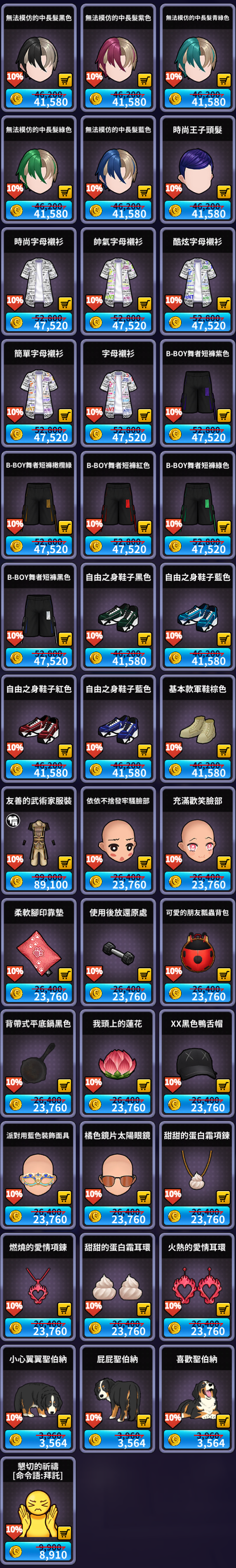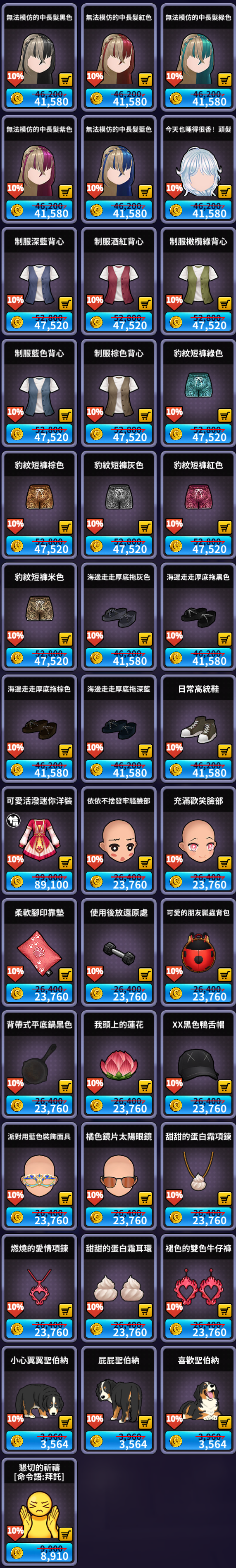 | NEW角色資訊裝扮商品 - 再往下一點! |