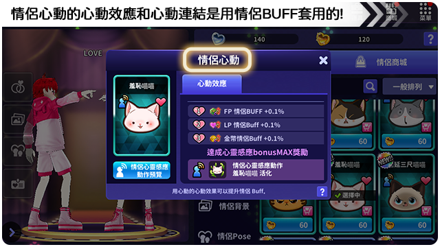 ■ 使用心動連結時,可增加情侶Buff bonus效果。