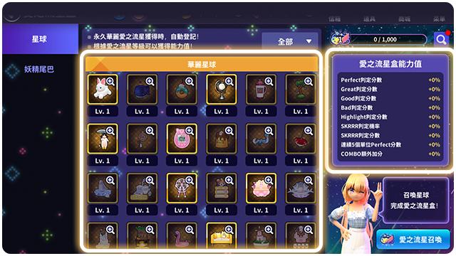 ■ 集滿愛之流星盒經驗值可以提升愛之流星盒等級。
