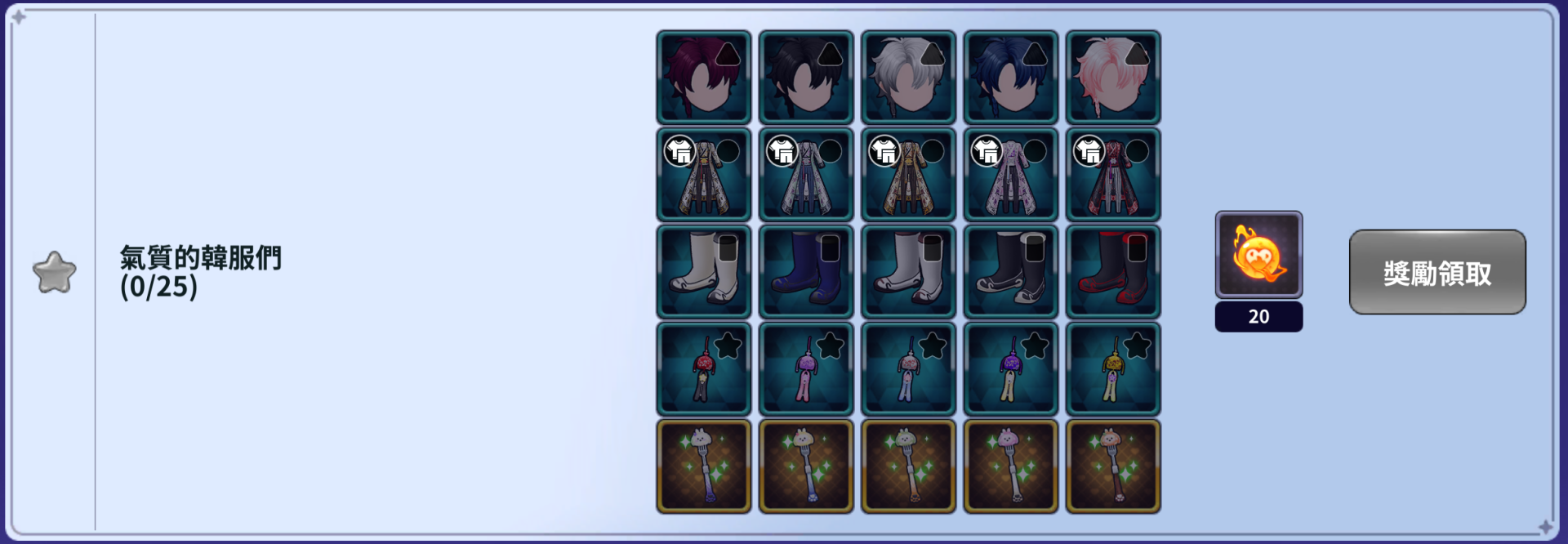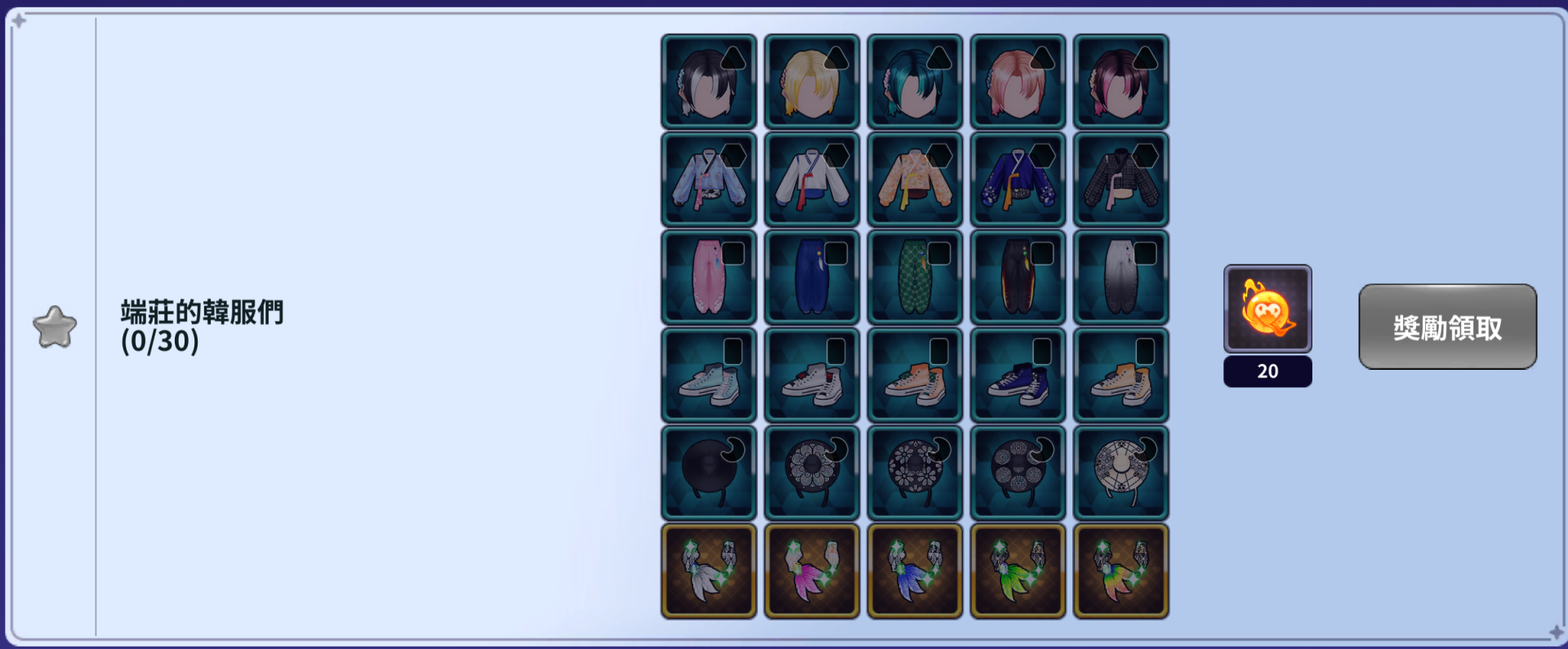 - 獲得符合每個收集獎勵的時裝,當符合條件時,就可以獲得收集獎勵。