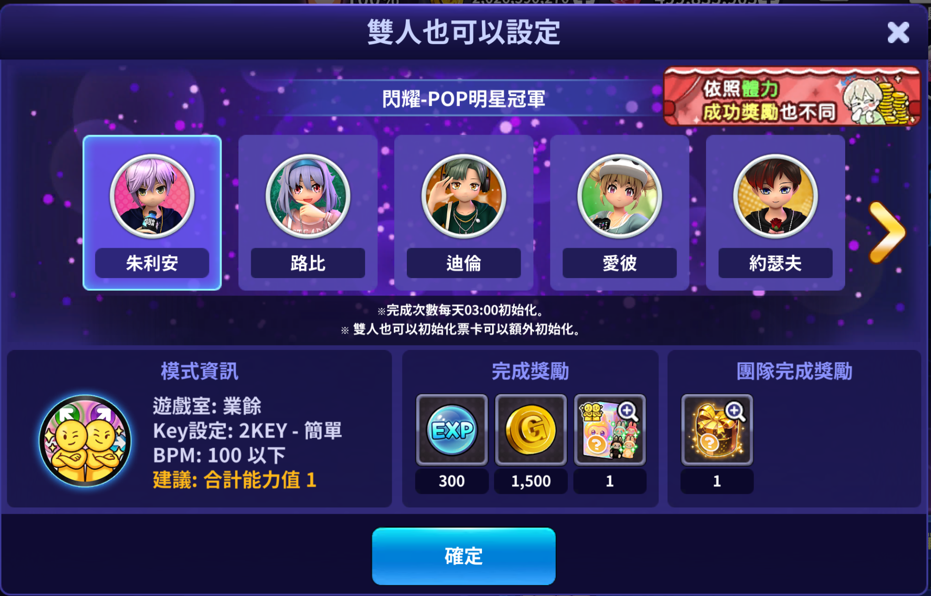 閃耀-POP明星冠軍 | 一個人也撲通撲通拉皮克箱子 | 1 | 閃耀-POP明星冠軍 | 雙人也撲通撲通拉皮克箱子 | 1 | ||