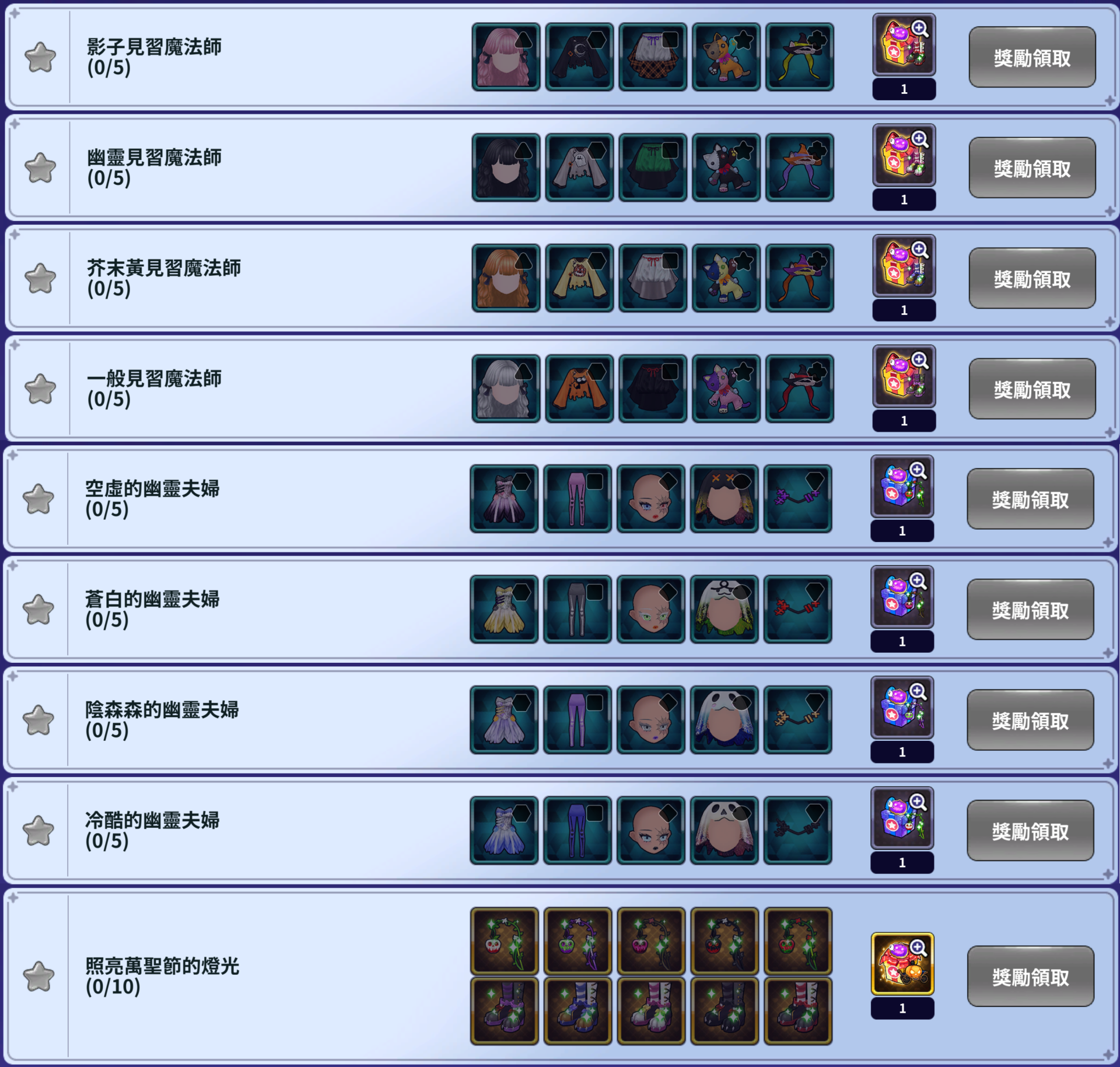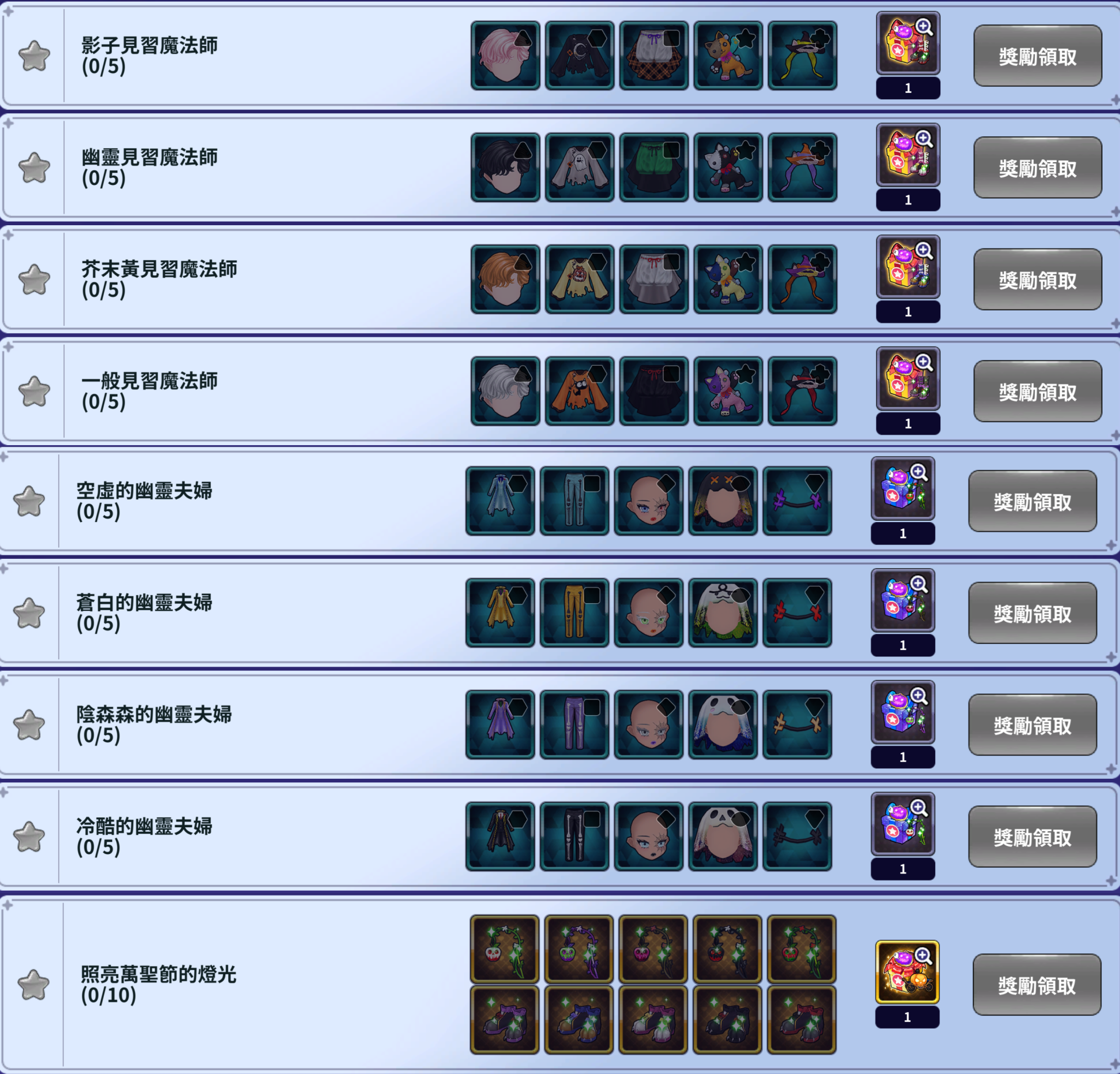 - 獲得符合每個收集獎勵的時裝,當符合條件時,就可以獲得收集獎勵。