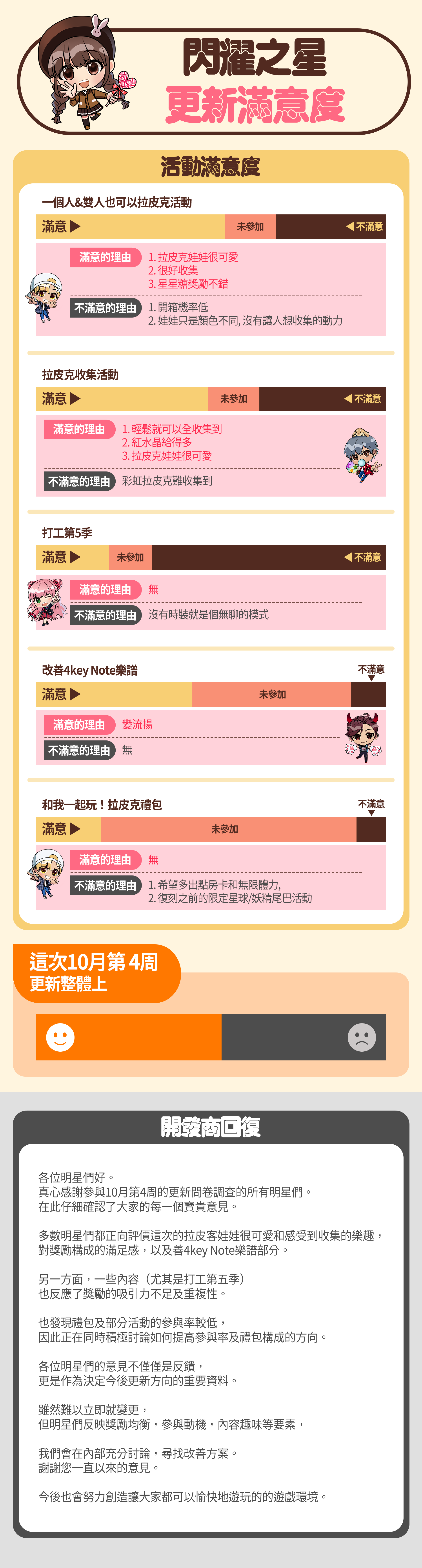 25年10月第4周更新滿意度調查結果及事後規劃 閃耀之星