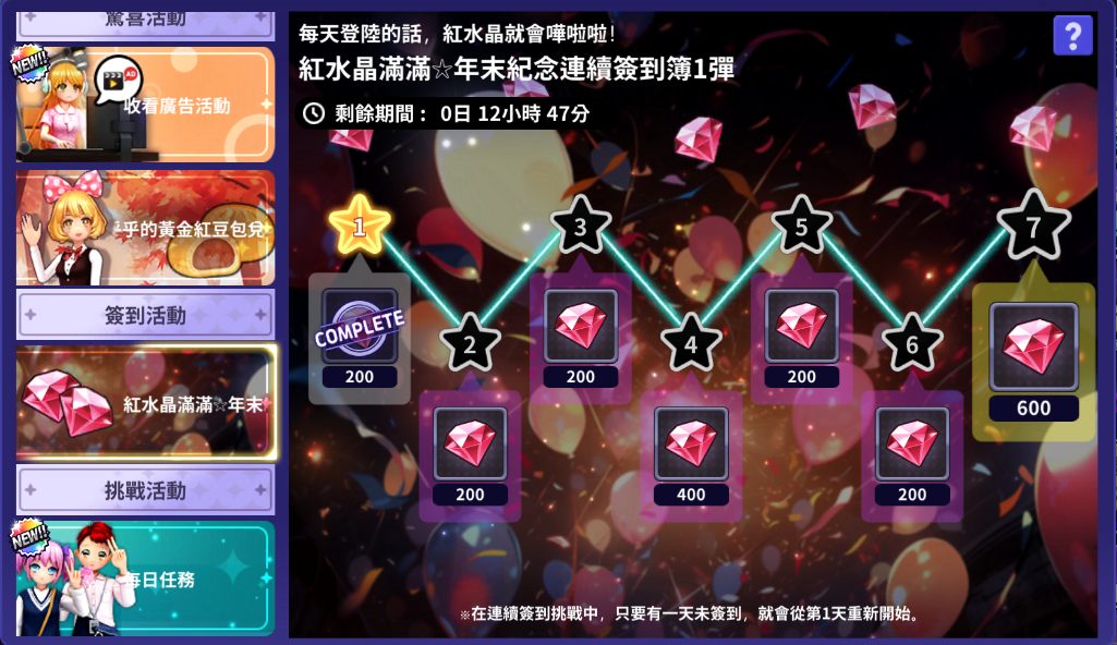 [紅水晶滿滿☆年末紀念連續簽到簿1彈]