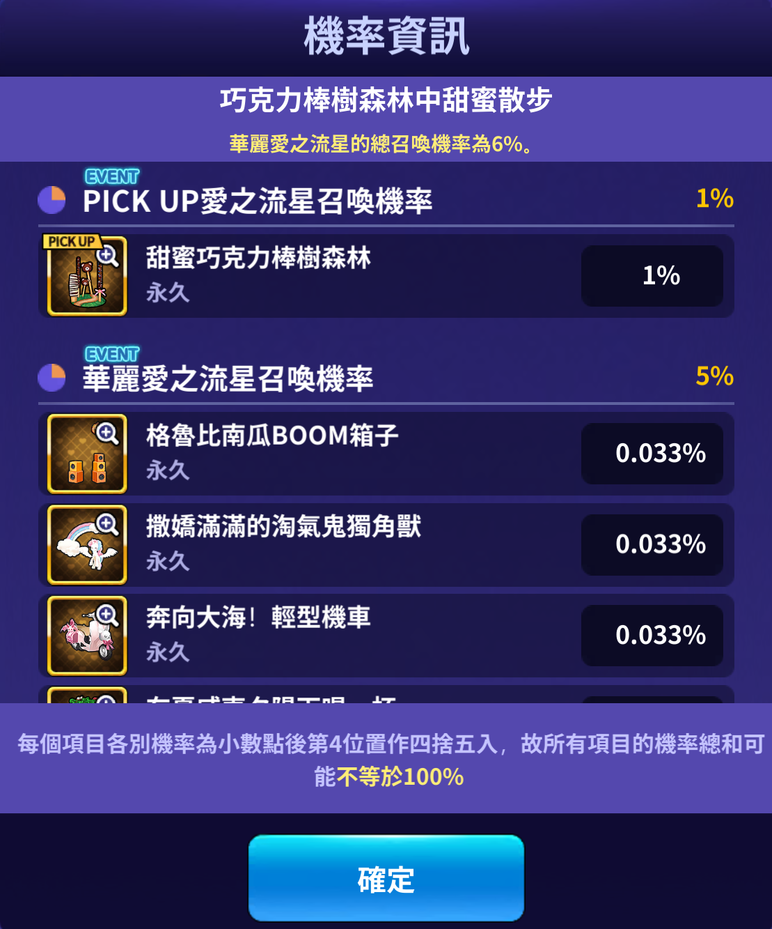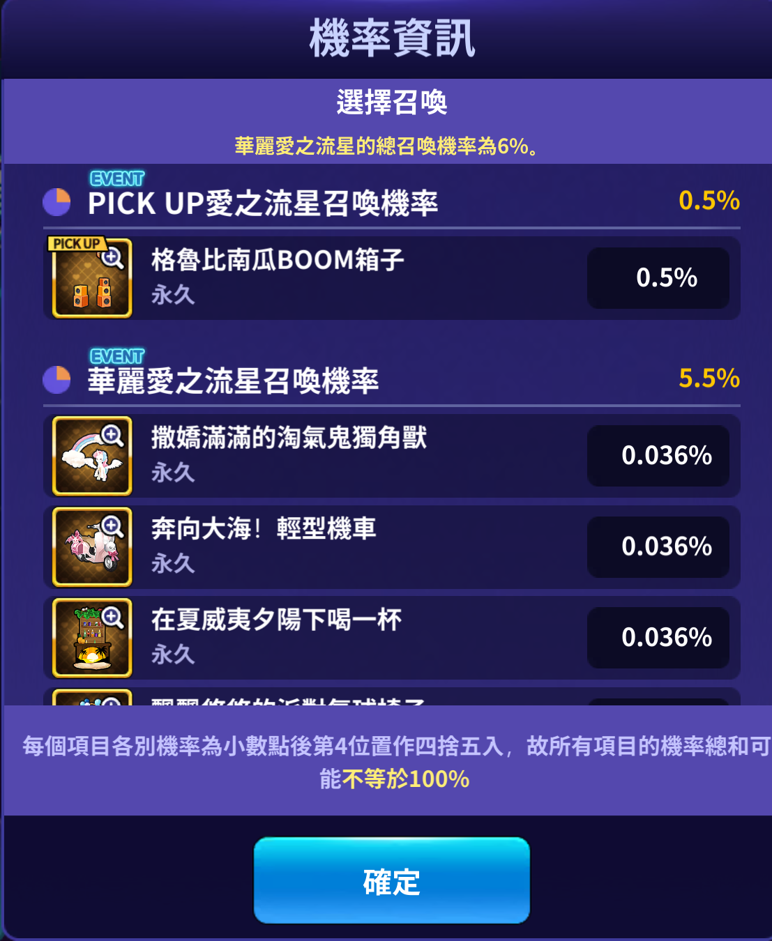 - 在愛之流星上進行抽卡時,華麗愛之流星召喚機率100% UP。