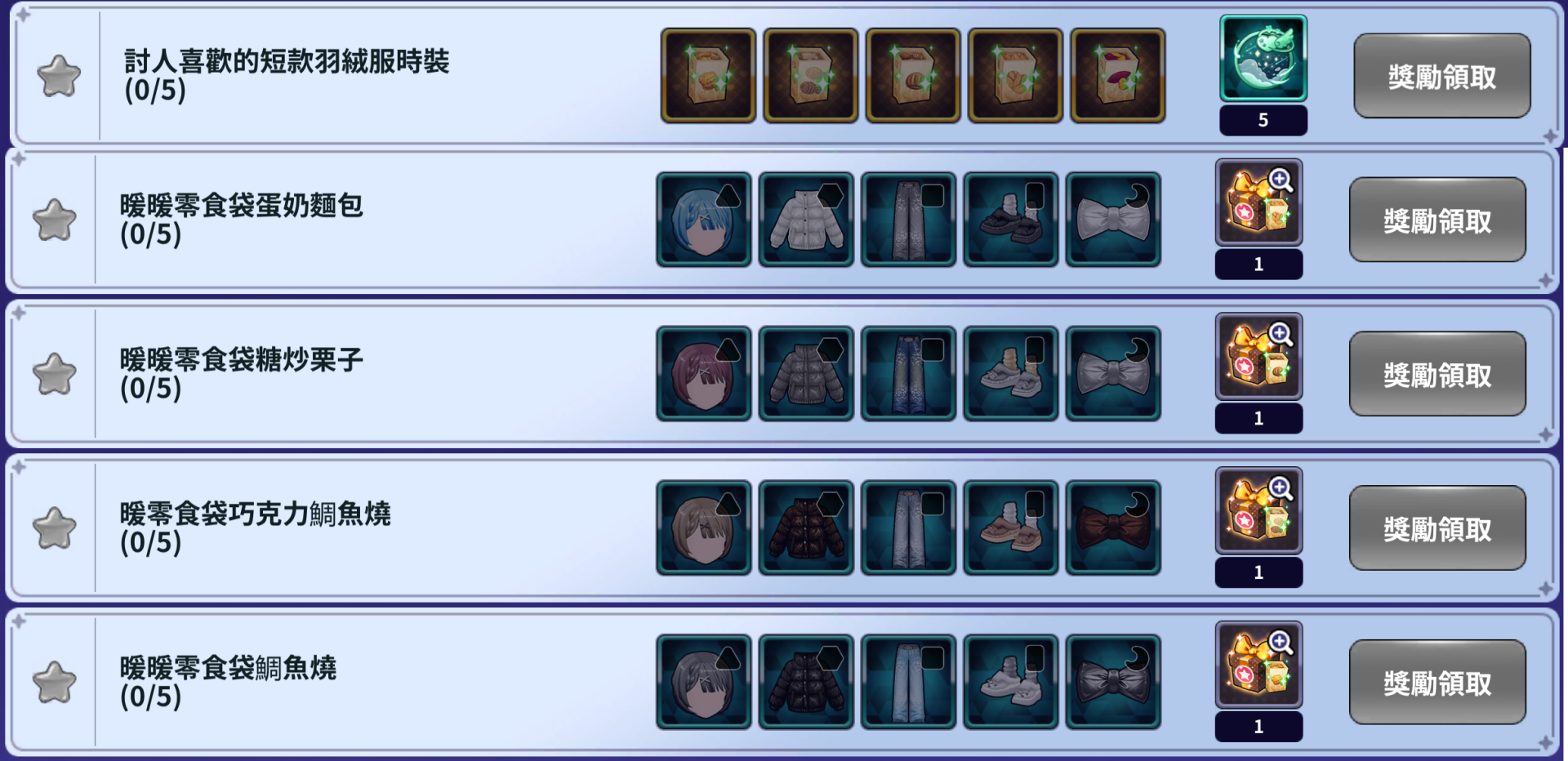 - 獲得符合每個收集獎勵的時裝,當符合條件時,就可以獲得收集獎勵。