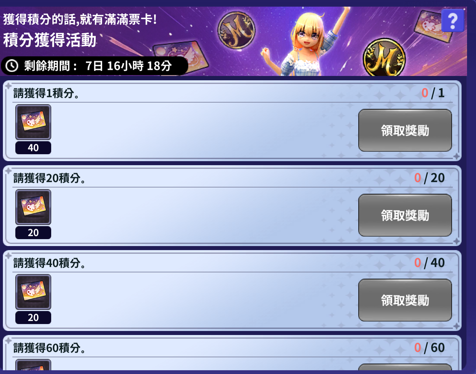 - 每達到目標積分就可以額外獲得豐富的票卡