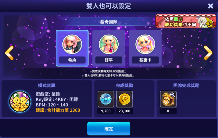 - 活動期間完成 <一個人也可以><雙人也可以> 模式時EXP獲取量增加。