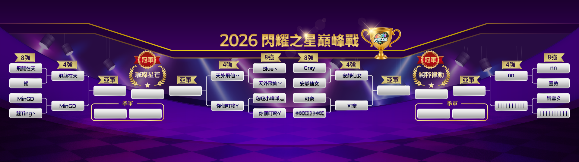 閃耀之星 雙人也可以 | 1 | 1 | 555 | 2755 | 迪倫 | 1110 |