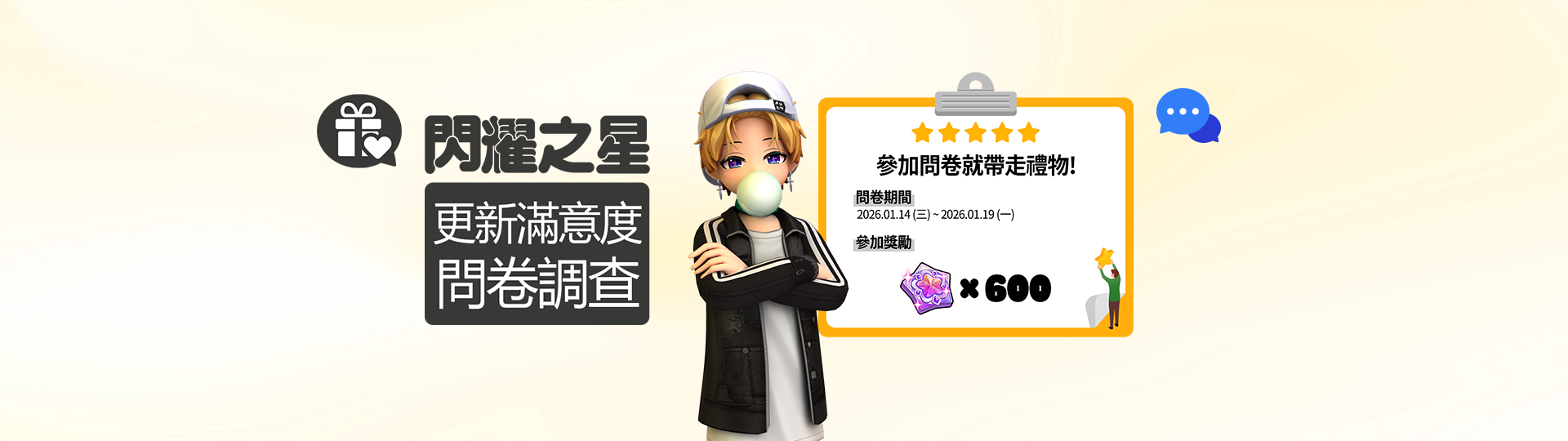 閃耀之星更新滿意度問卷調查活動 (26年1月第2周)~٩(๑❛ᴗ❛๑)۶ 閃耀之星