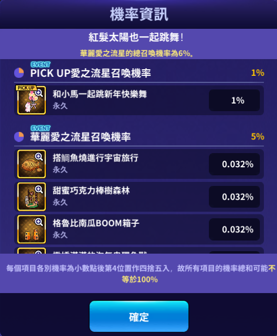 - 在愛之流星上進行抽卡時,華麗愛之流星召喚機率UP。