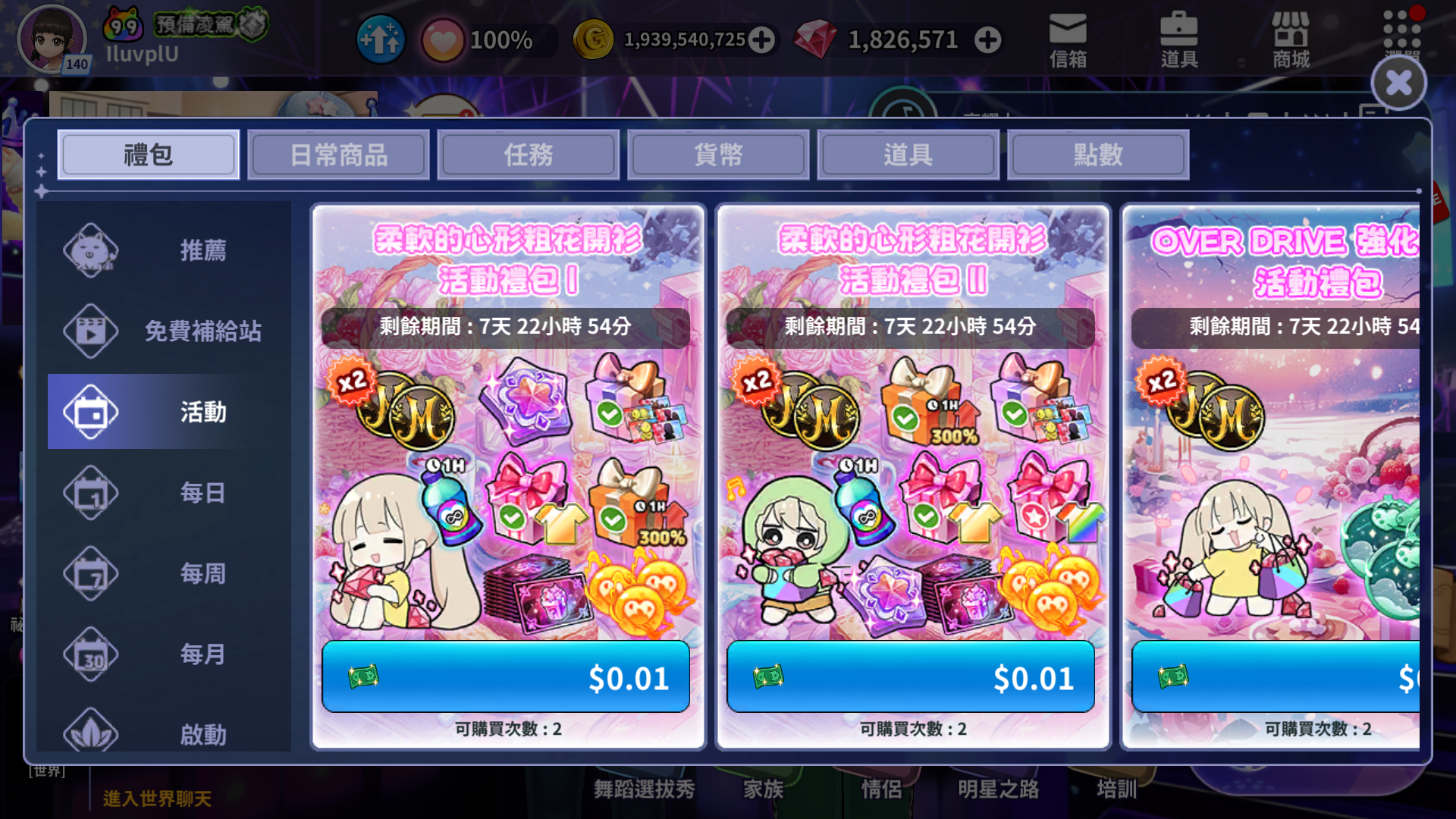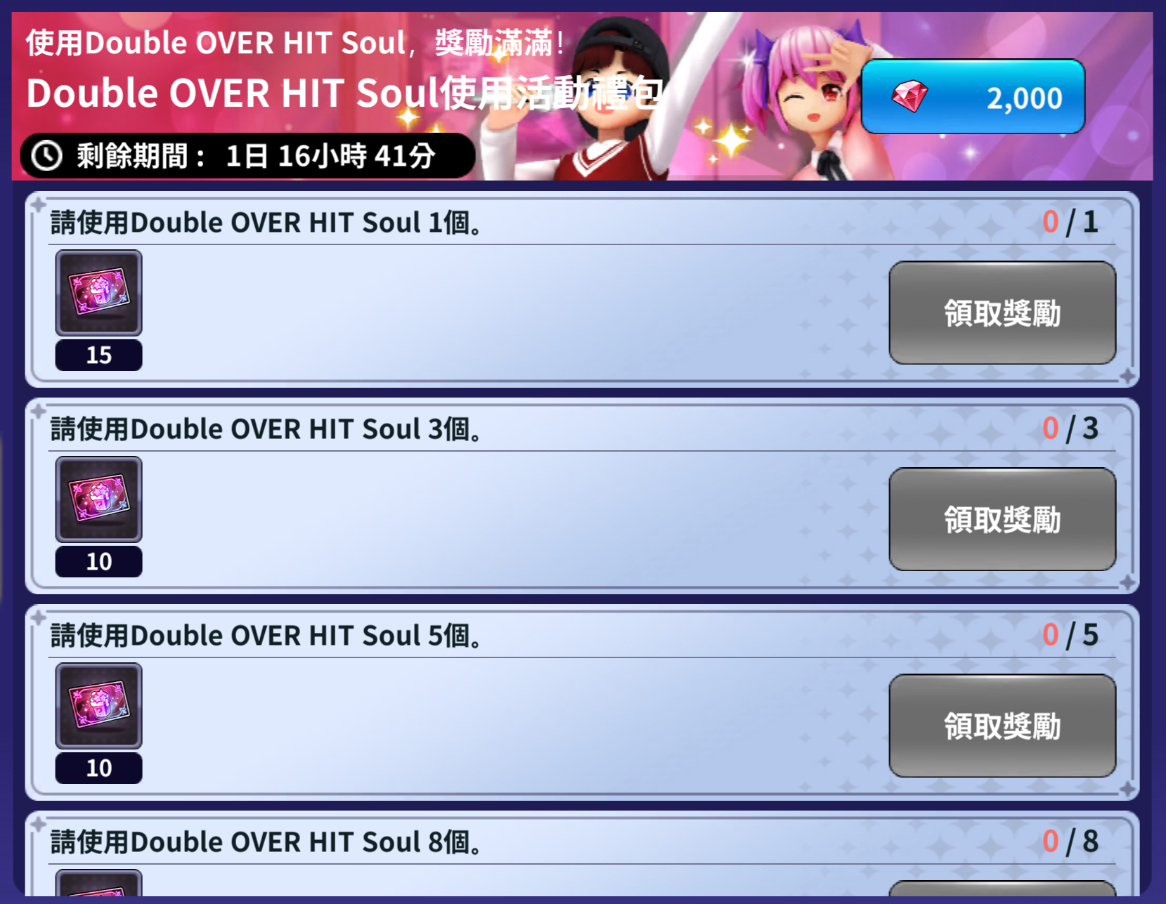 這一週準備了Double OVER HIT Soul使用活動跟禮包購買活動!