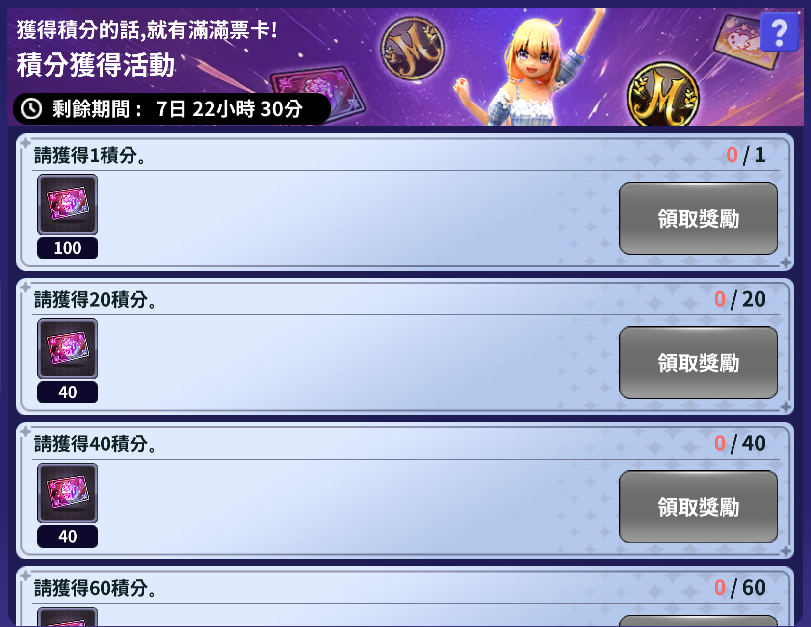 - 每達到目標積分就可以額外獲得豐富的票卡。