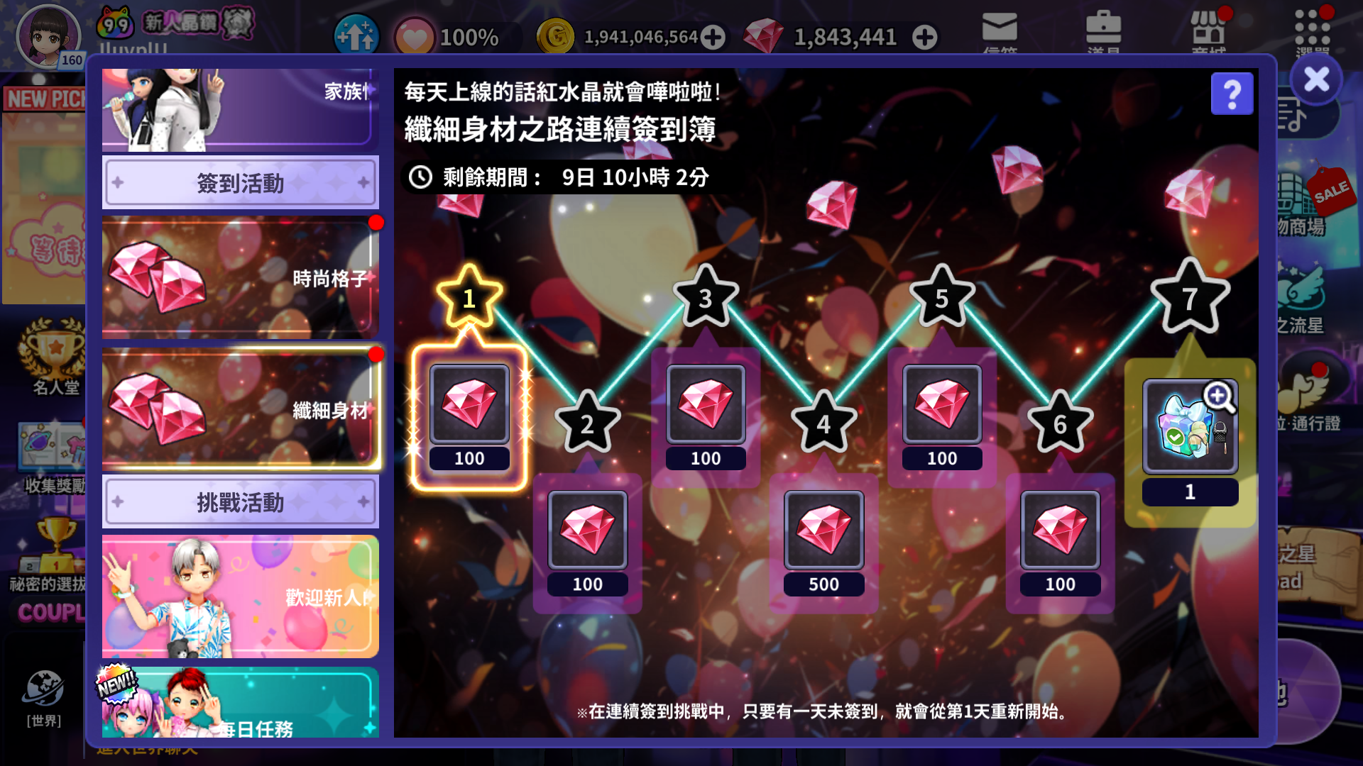 - 連續簽到時可以獲得下一次簽到獎勵。