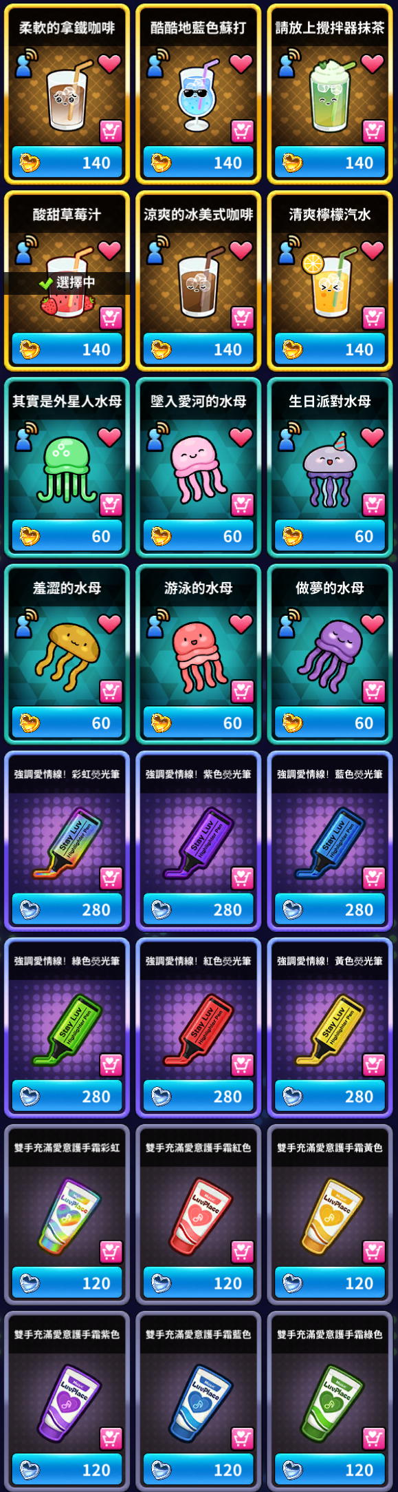 1 | 星星糖 | 20,000 | 14,000 | 家族名譽硬幣 | 150 |