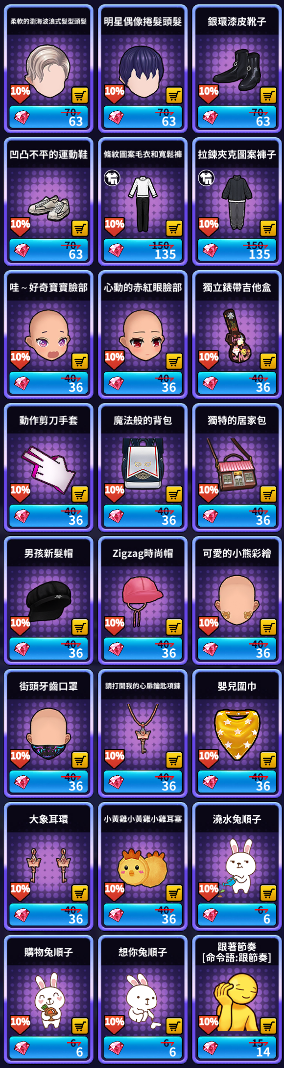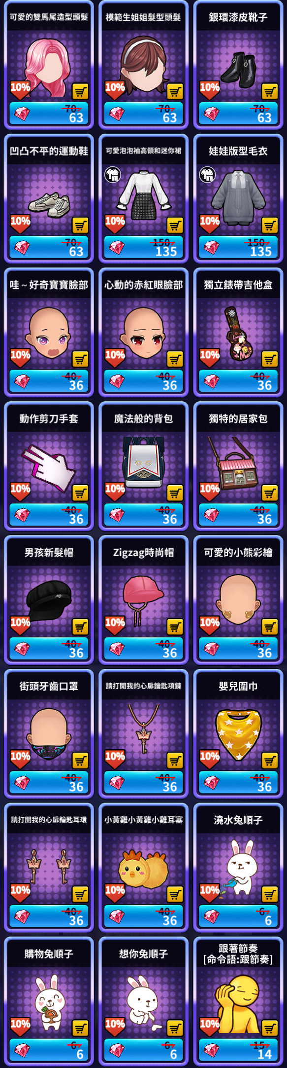 2 | 星星糖 | 30,000 | 500,100 | 家族名譽硬幣 | 225 |
