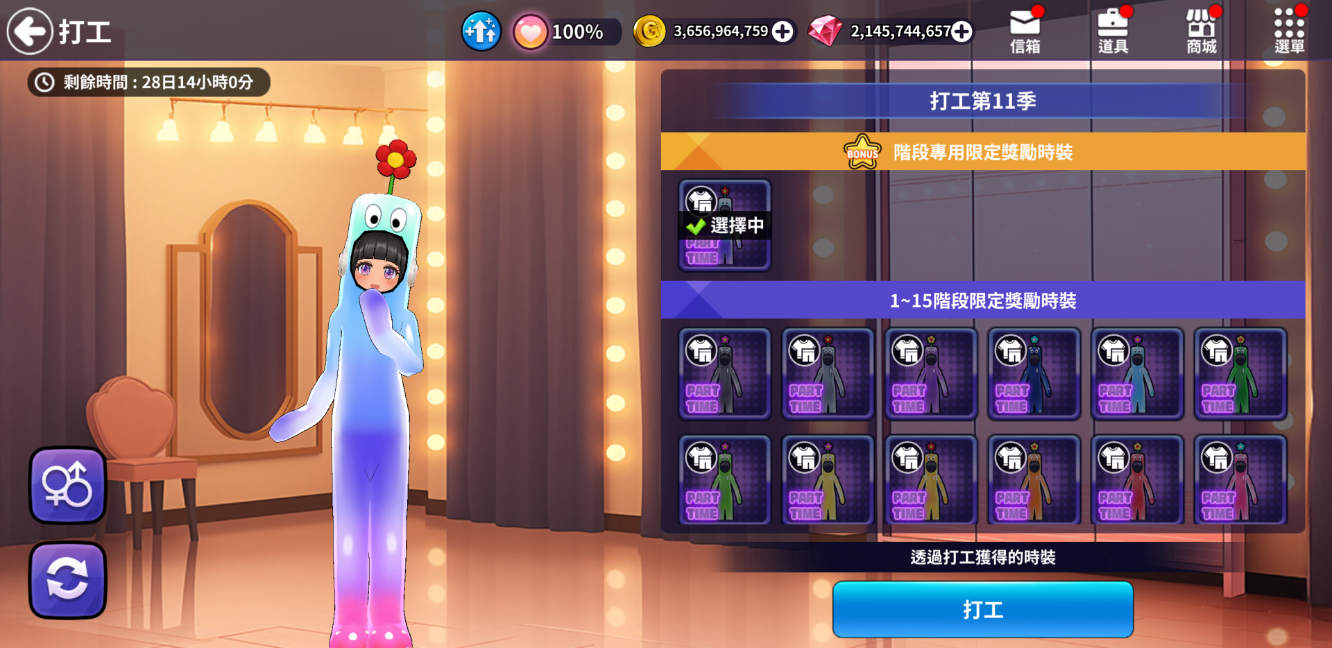 📌打工第11季慶祝打工通行證登場, 第11季期間完成打工模式時經驗值/金幣/LP/FP獲取量300% UP。
