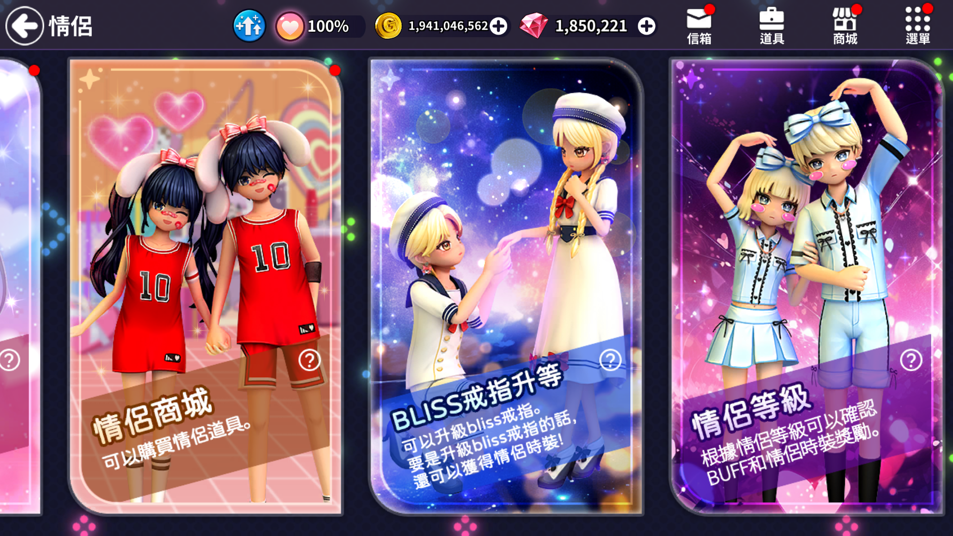 ⑤ 情侶等級獎勵: 根據情侶等級顯示可獲得的獎勵資訊。
