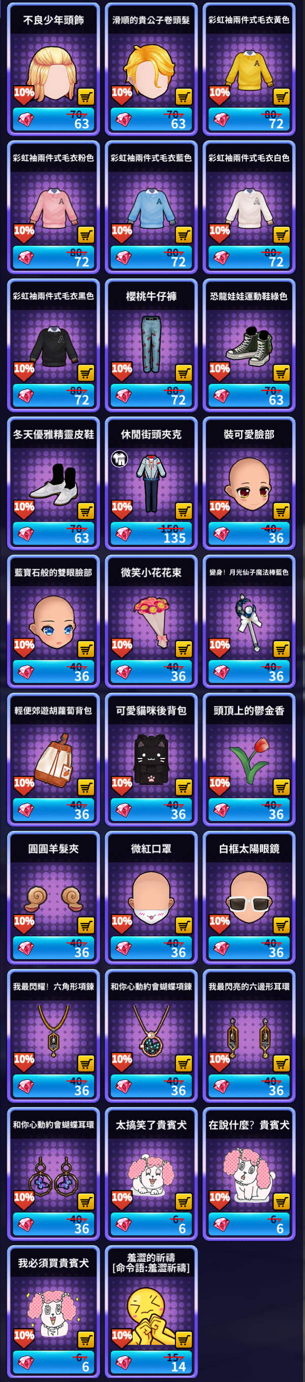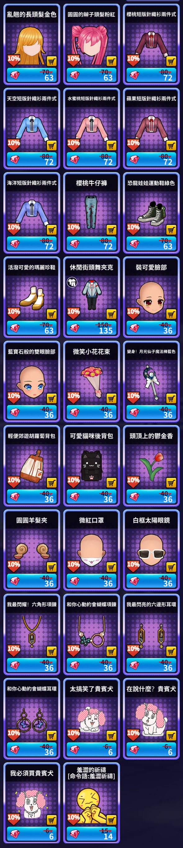 | 呼叫中心的偶像 | 銀色情侶硬幣 1個 | 銀色情侶硬幣 25個 | 銀色情侶硬幣 25個 | 黃金情侶硬幣 50個 | |