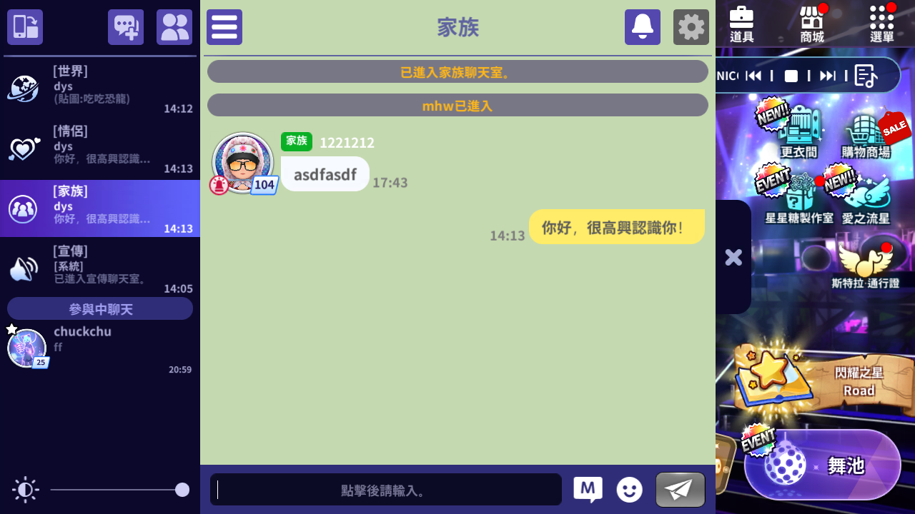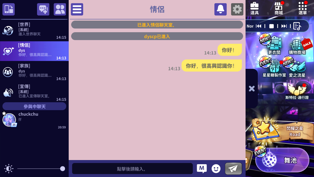 📌遊戲遊玩過程中,聊天窗UI上顯示的【情侶】、【家族】聊天文字會改變顏色,使得更容易區分。