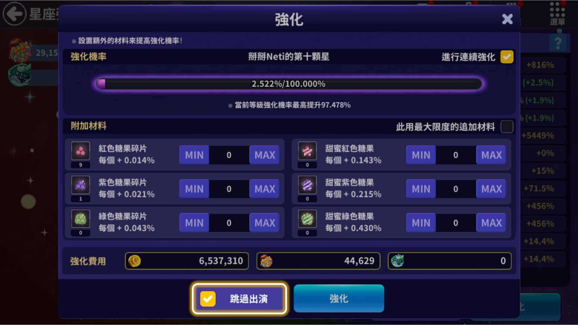 📌強化星座時,在強化的彈窗添加可以跳過星座強化演出的複選按鈕UI。